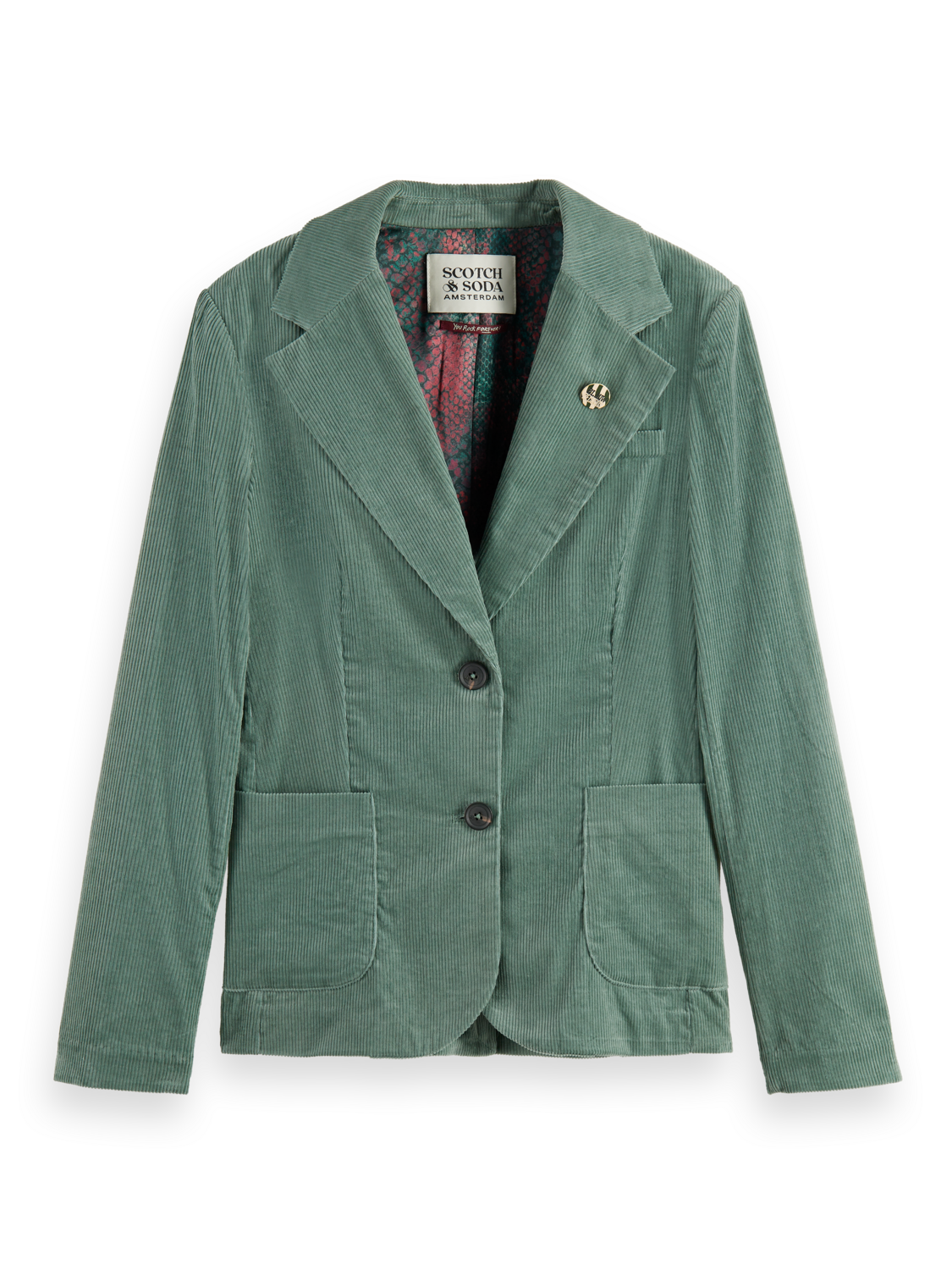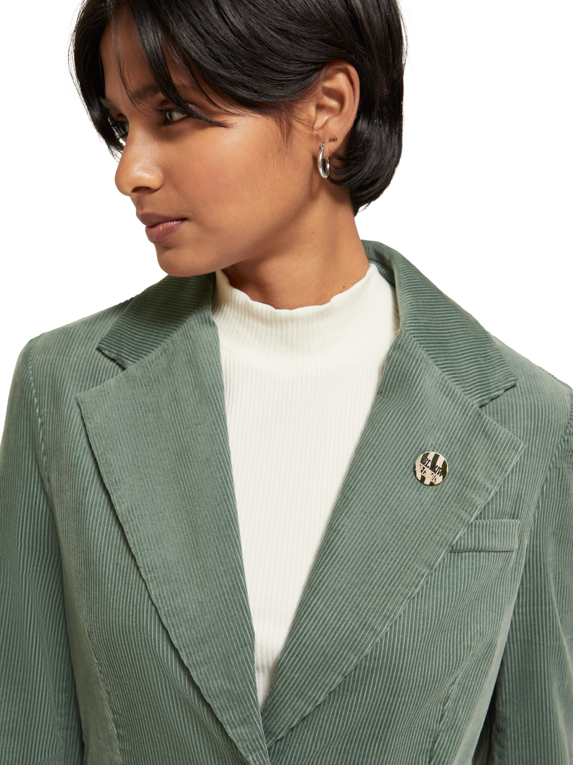Scotch & Soda Single Breasted Blazer In Lightweight Rib-Cord-Sea Weed