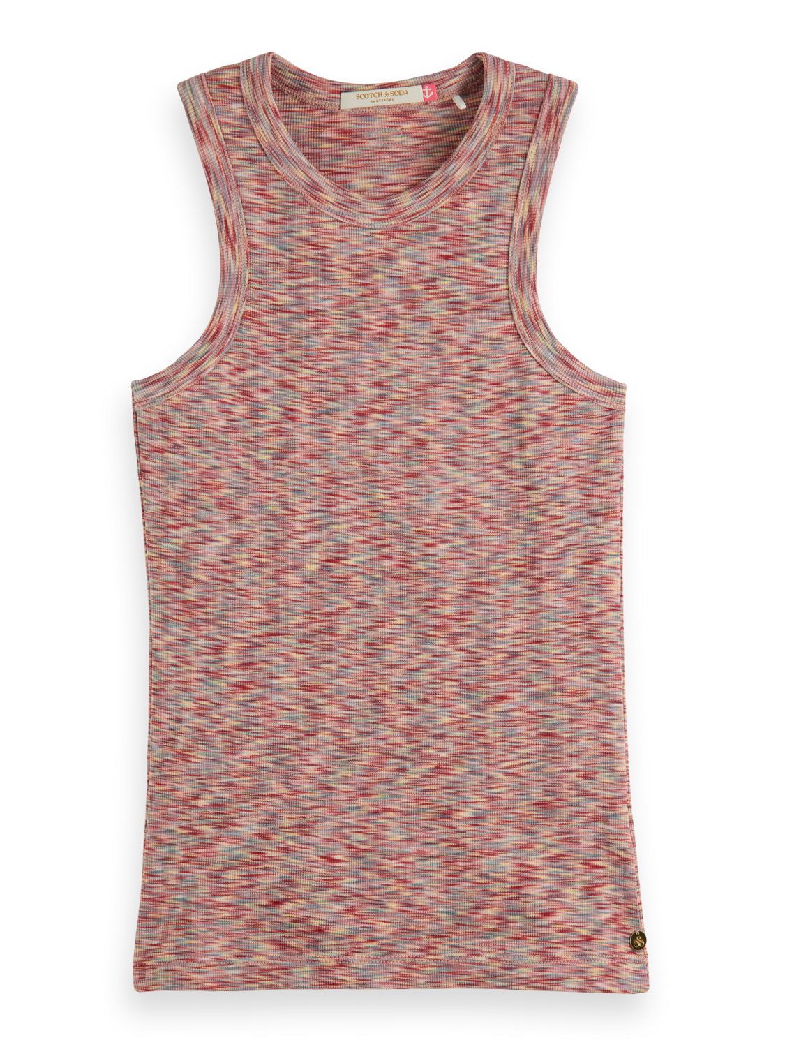 A classic knit, racerback tank top. Featuring an eye-catching, unique space-dyed pattern.Β