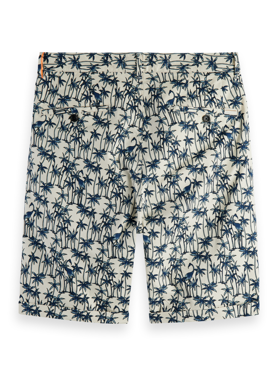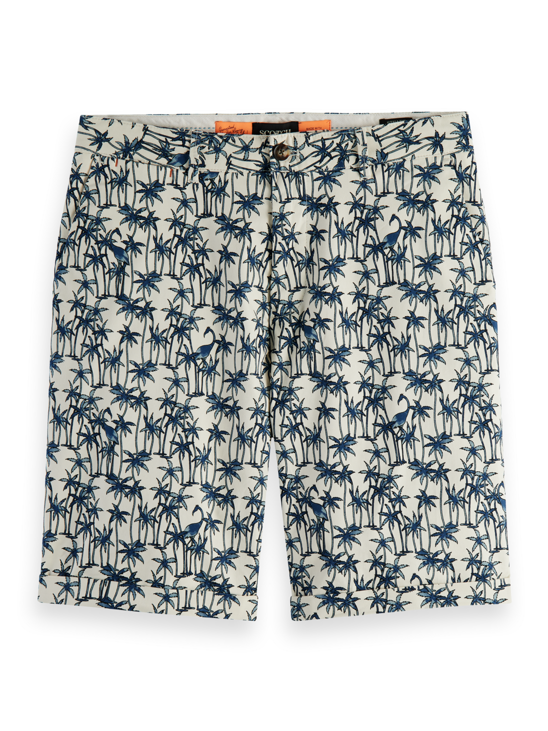 Regular straight fit accompanied with a button & zipper closure. A medium length chino short with an all-over palm print.Β Β