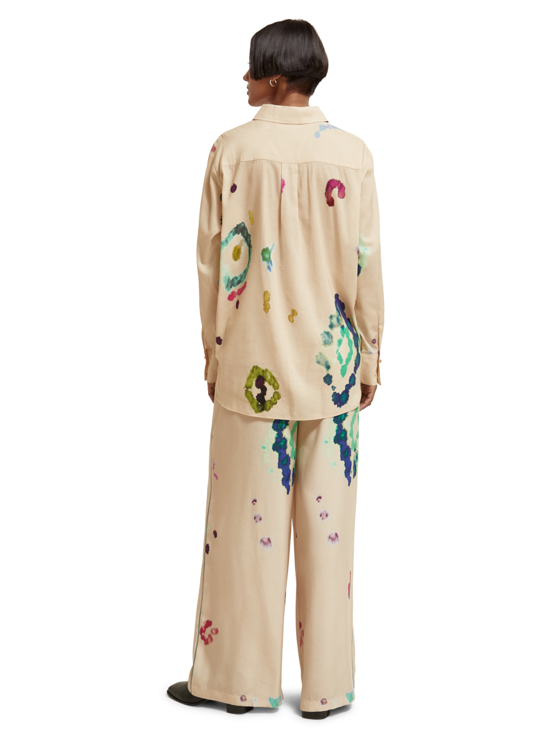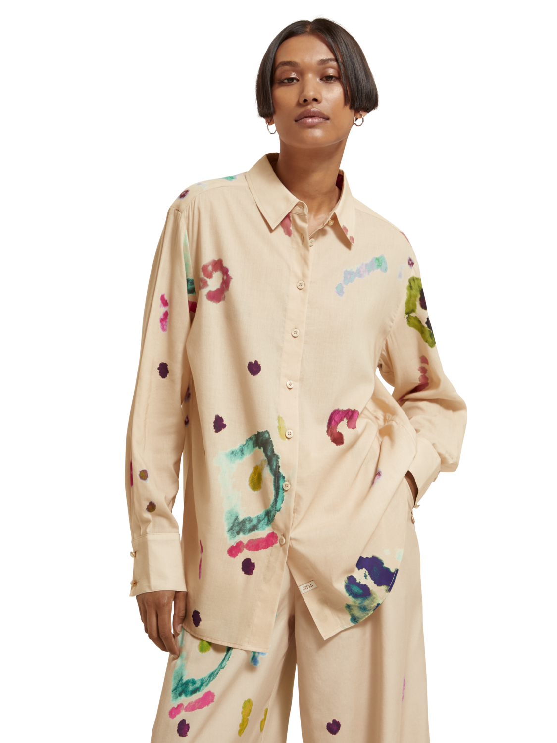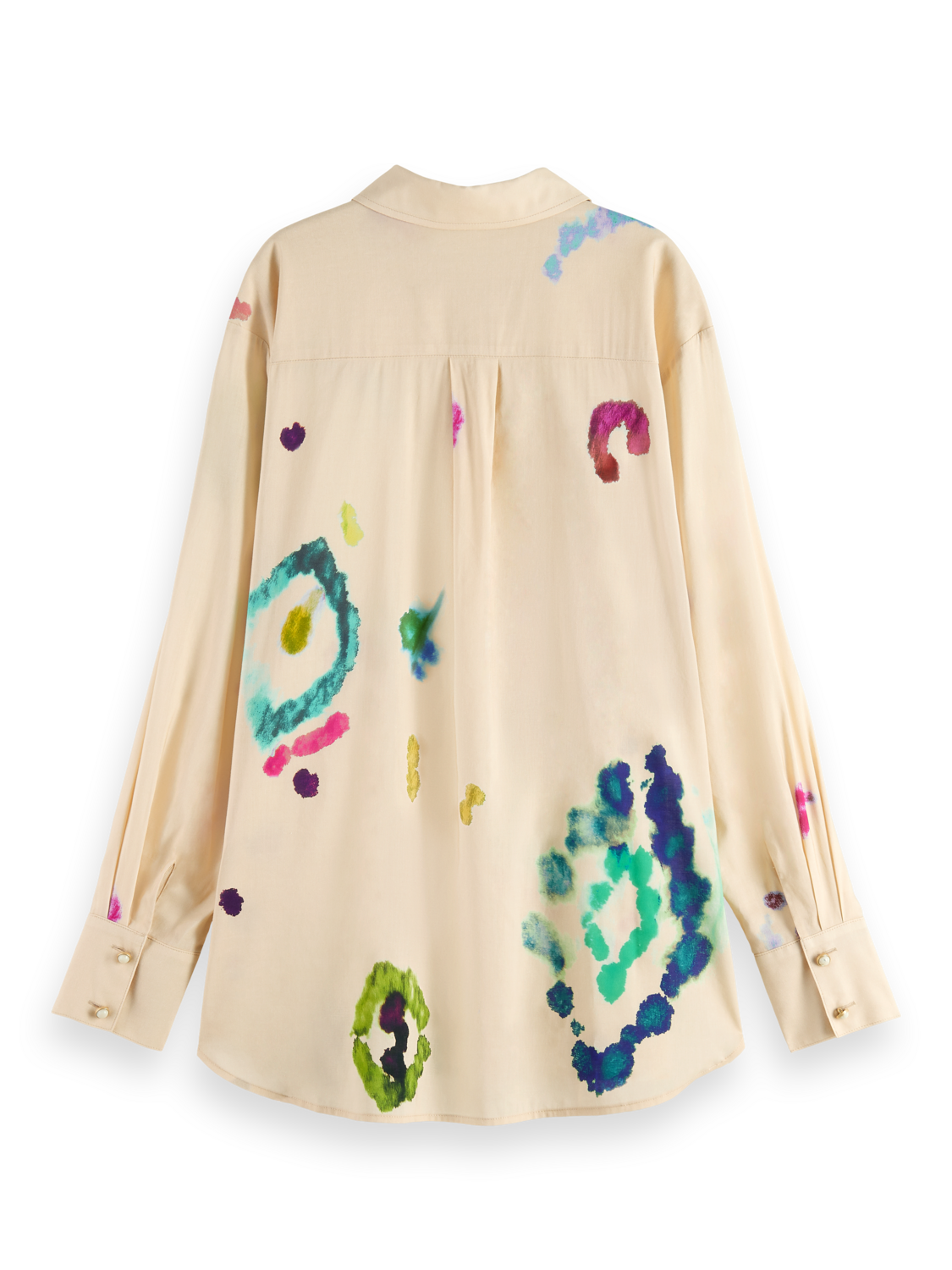 A relaxed fit, button-down, oversized shirt. Featuring a unique tie-dye print.