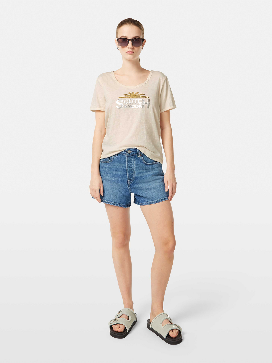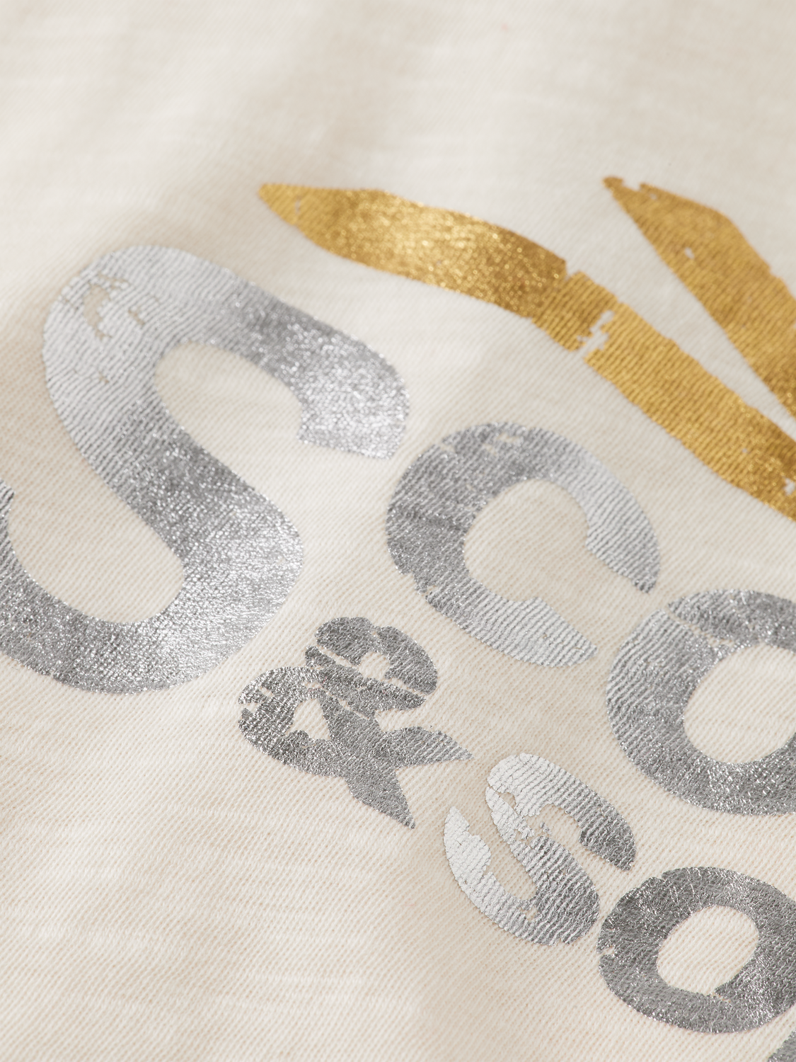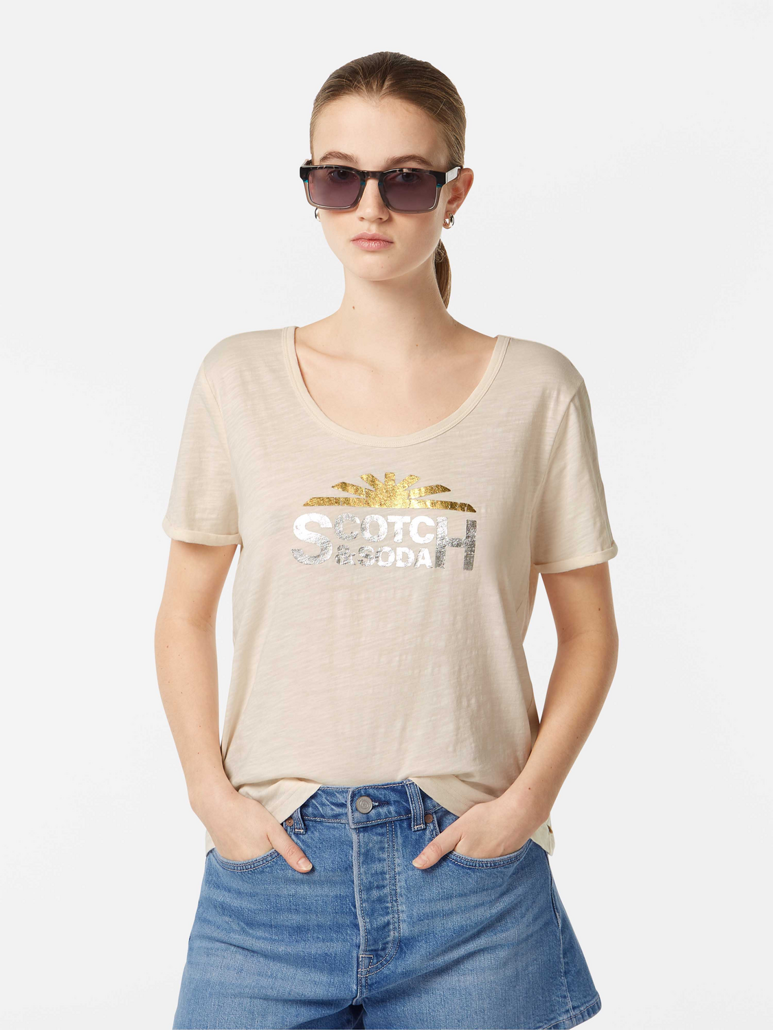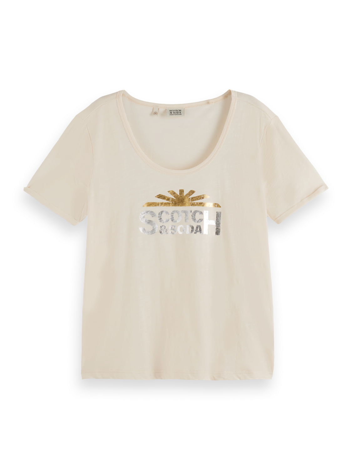 Scotch & Soda U-Neck Slub Foil Artwork T-Shirt-Soft Ice