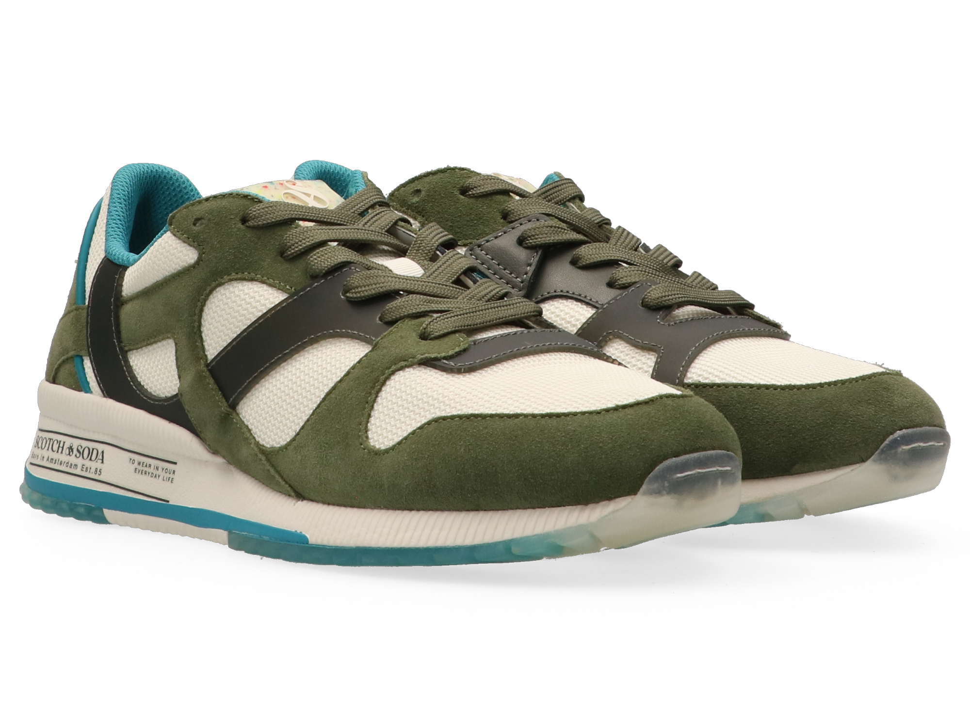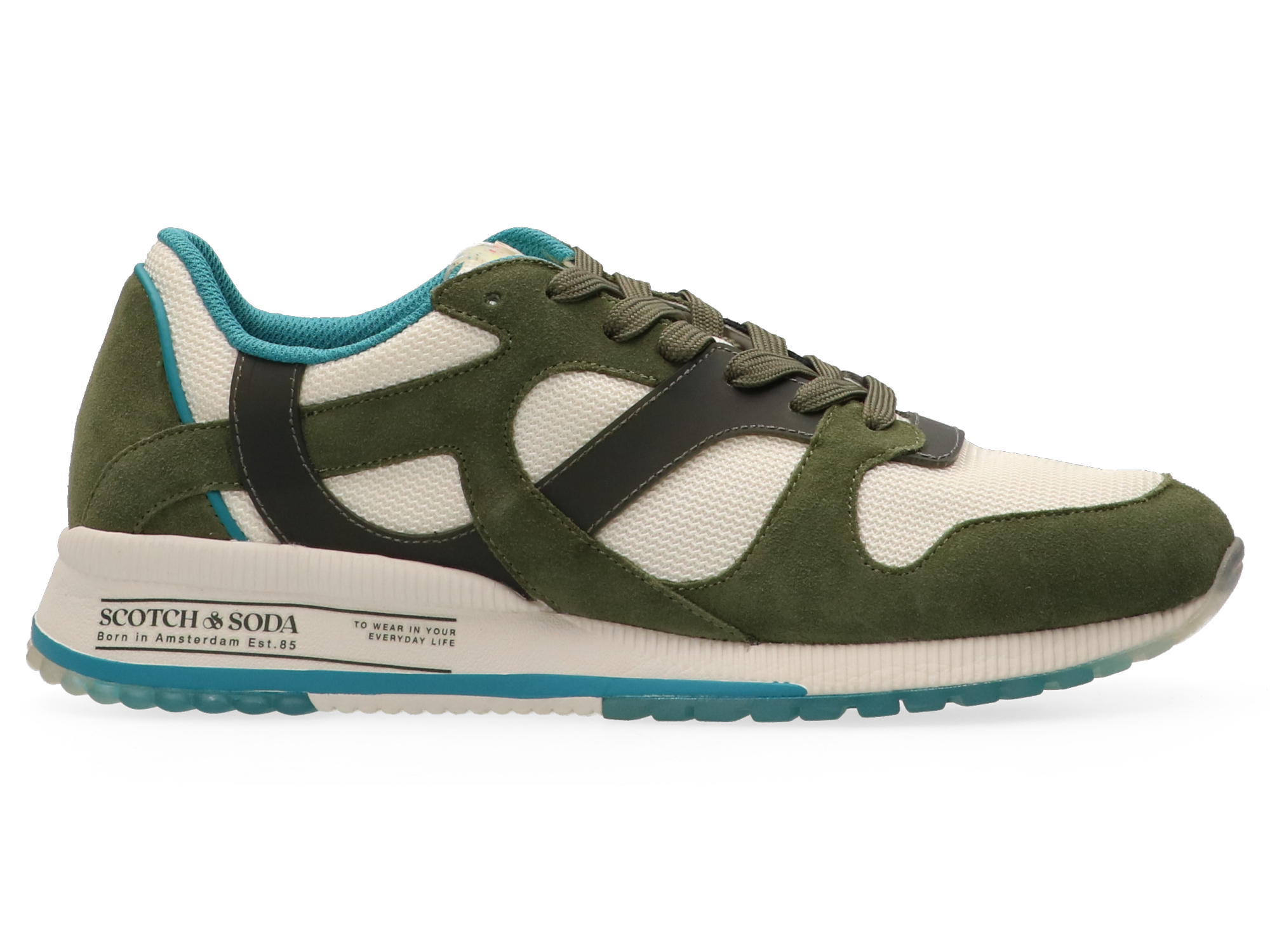 This lace up Scotch & Soda sneaker is a great compliment for your casual outfit of the day. Embrace the contemporary style and individuality with our Scotch & Soda Vivex in army green.
