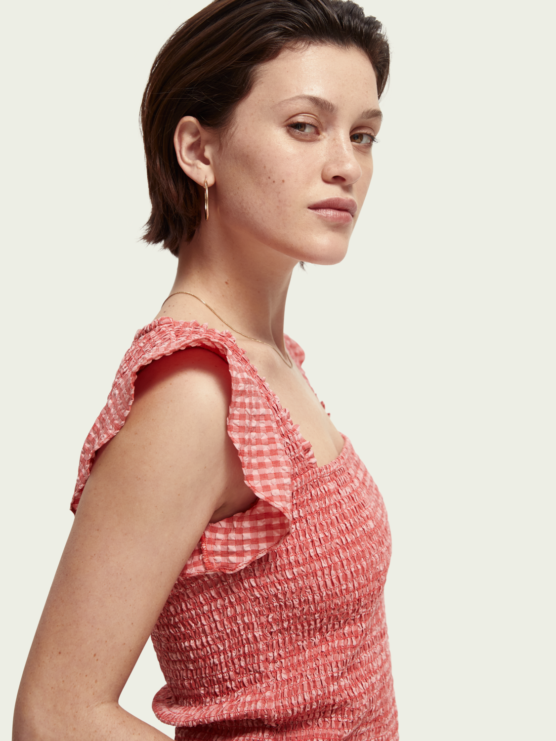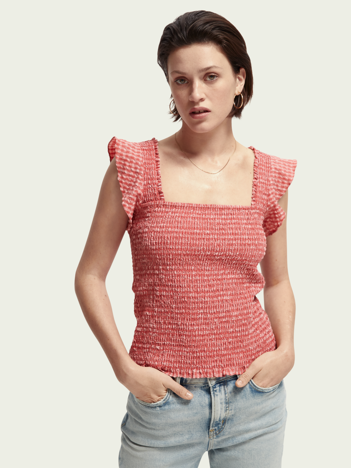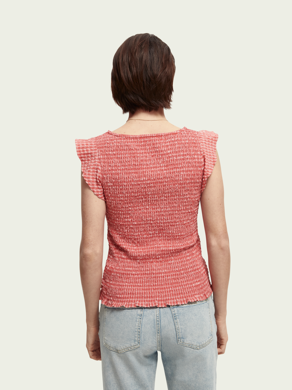 Scotch & Soda Seersucker Check Smocked Top