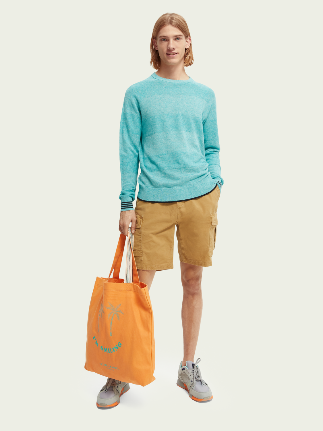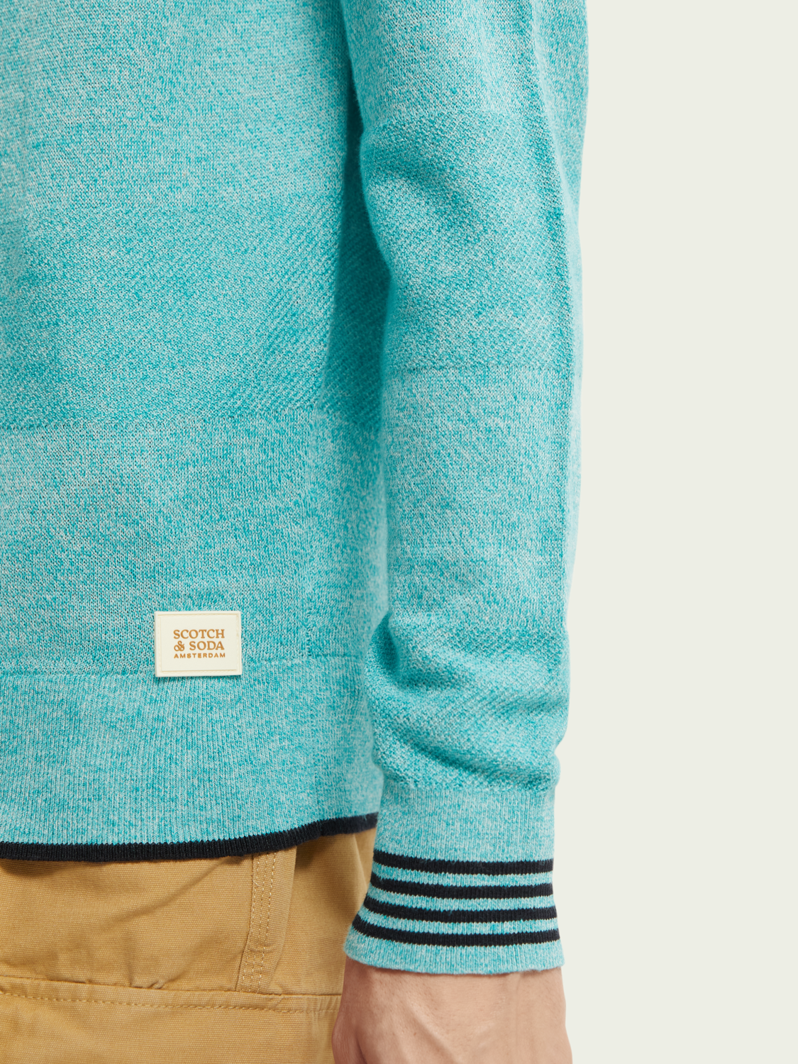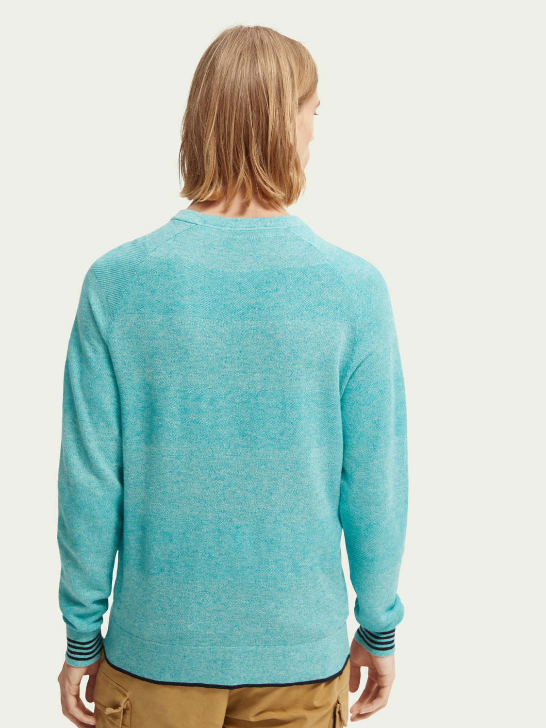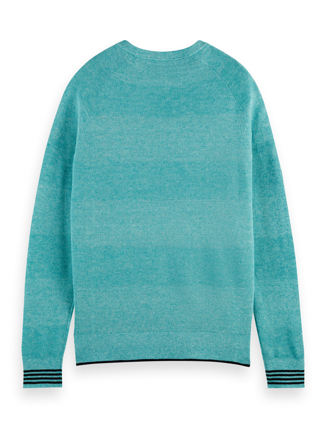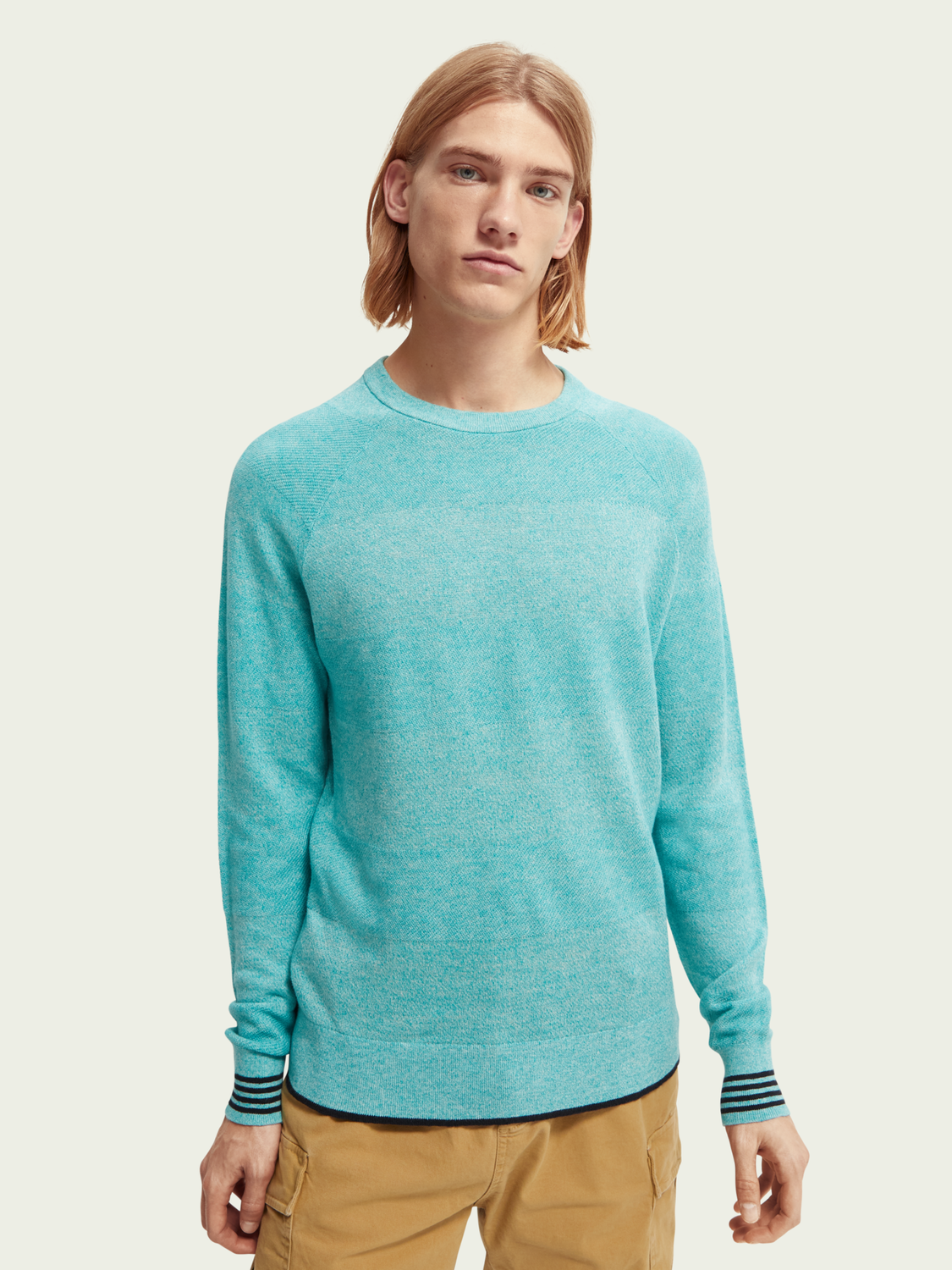 This Scotch & Soda Mens sweatshirt is a premium product made with 67% linen, 21% polyester, 12% cotton. Scotch & Soda is known for their eclectic statements & richly detailed sweaters.